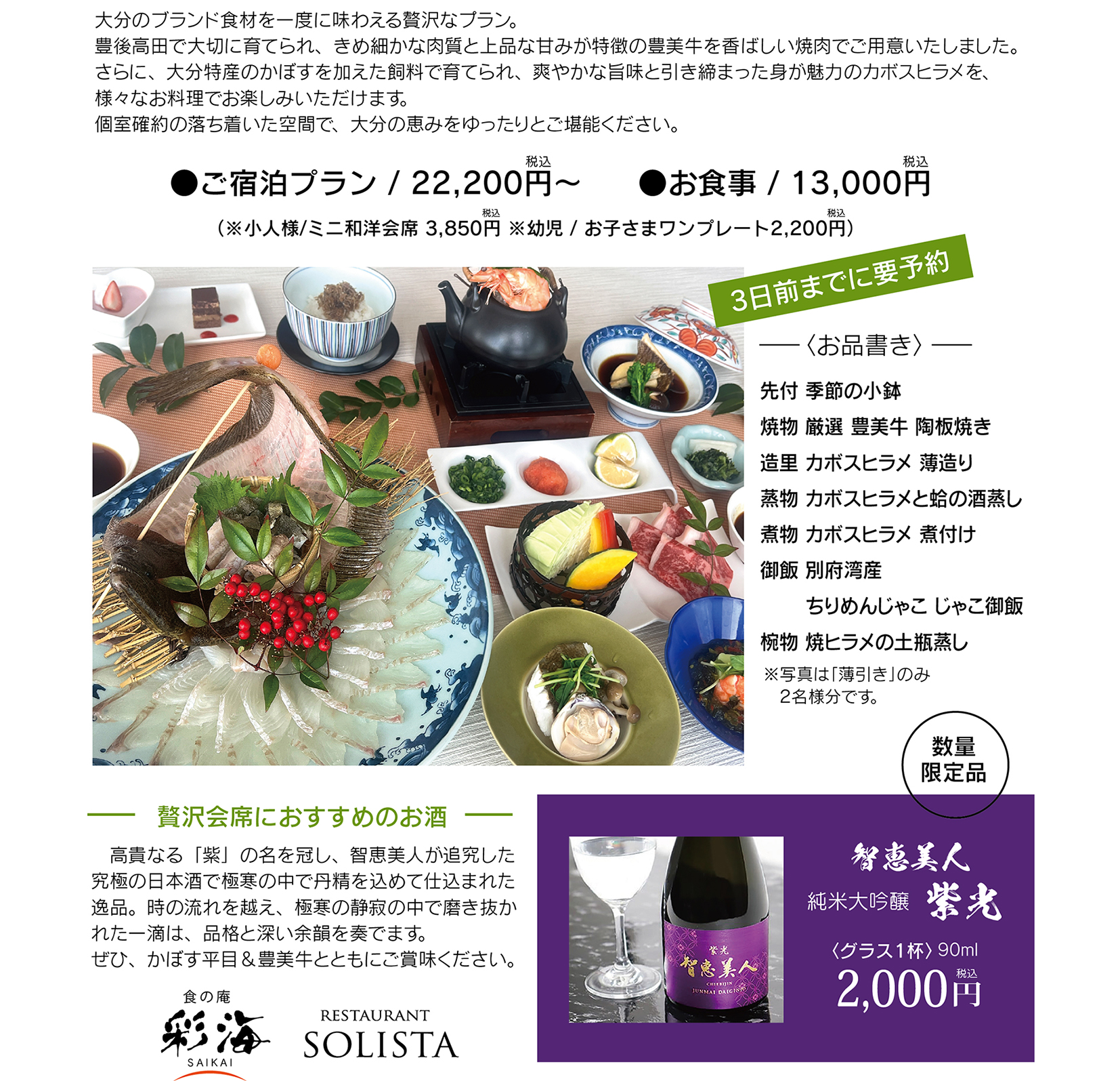 豊美牛とカボスヒラメを味わう贅沢会席プラン